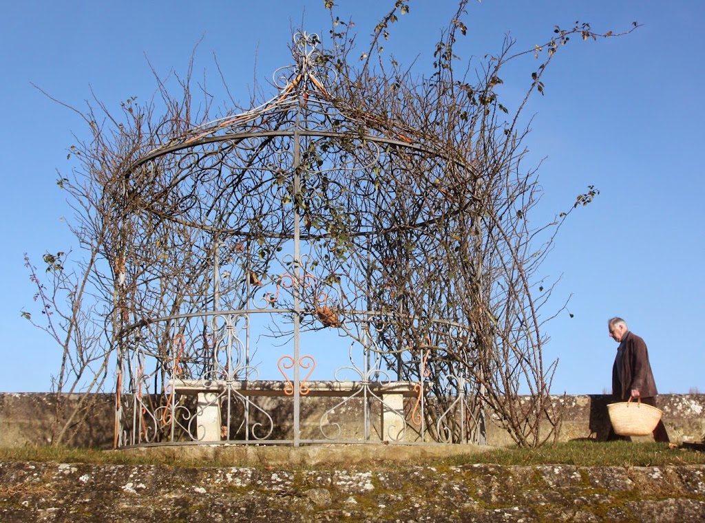 In a few months this should be a totally different scene (which is on top of the levee; the Loire is behind). By then this arbor should be totally covered in roses.